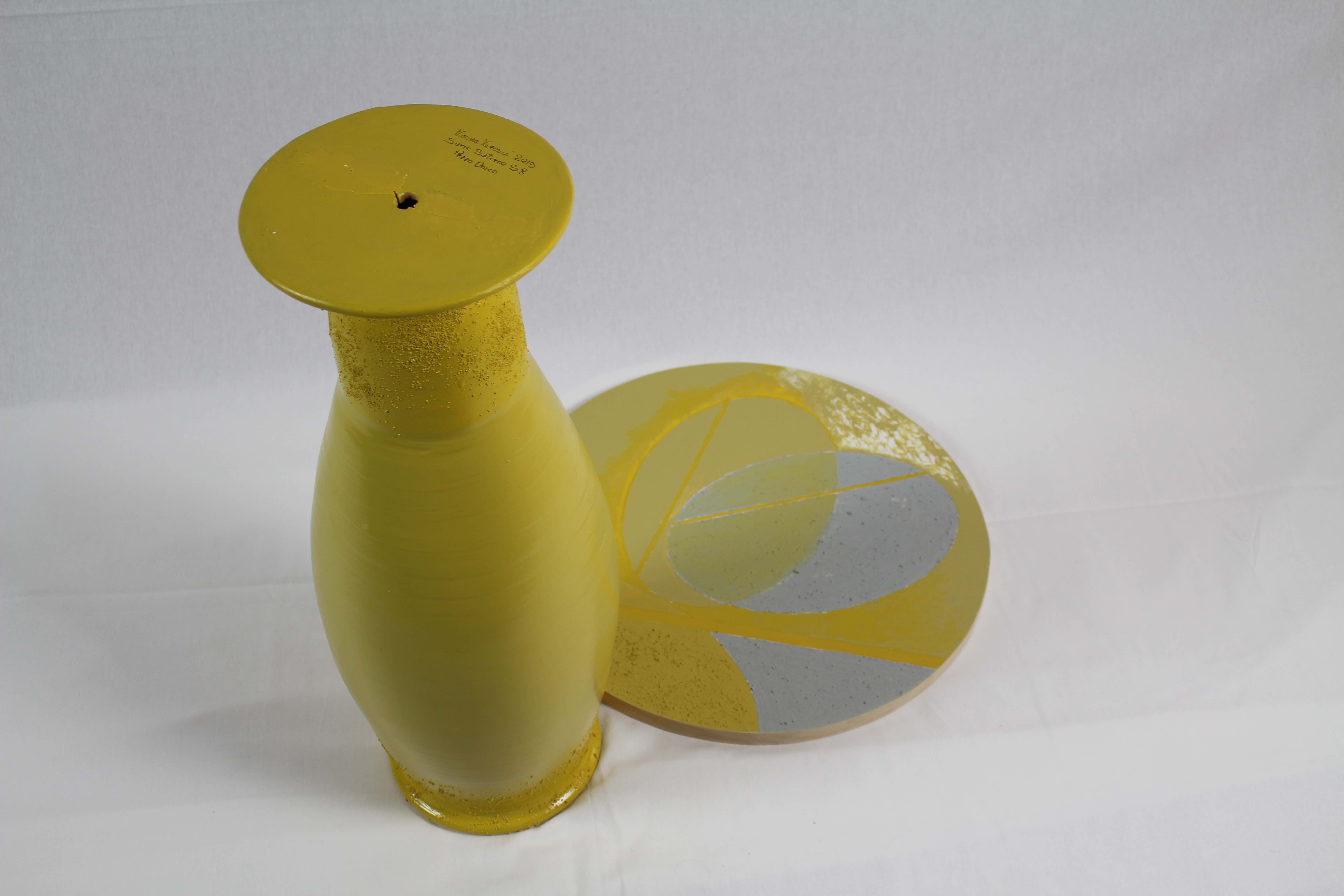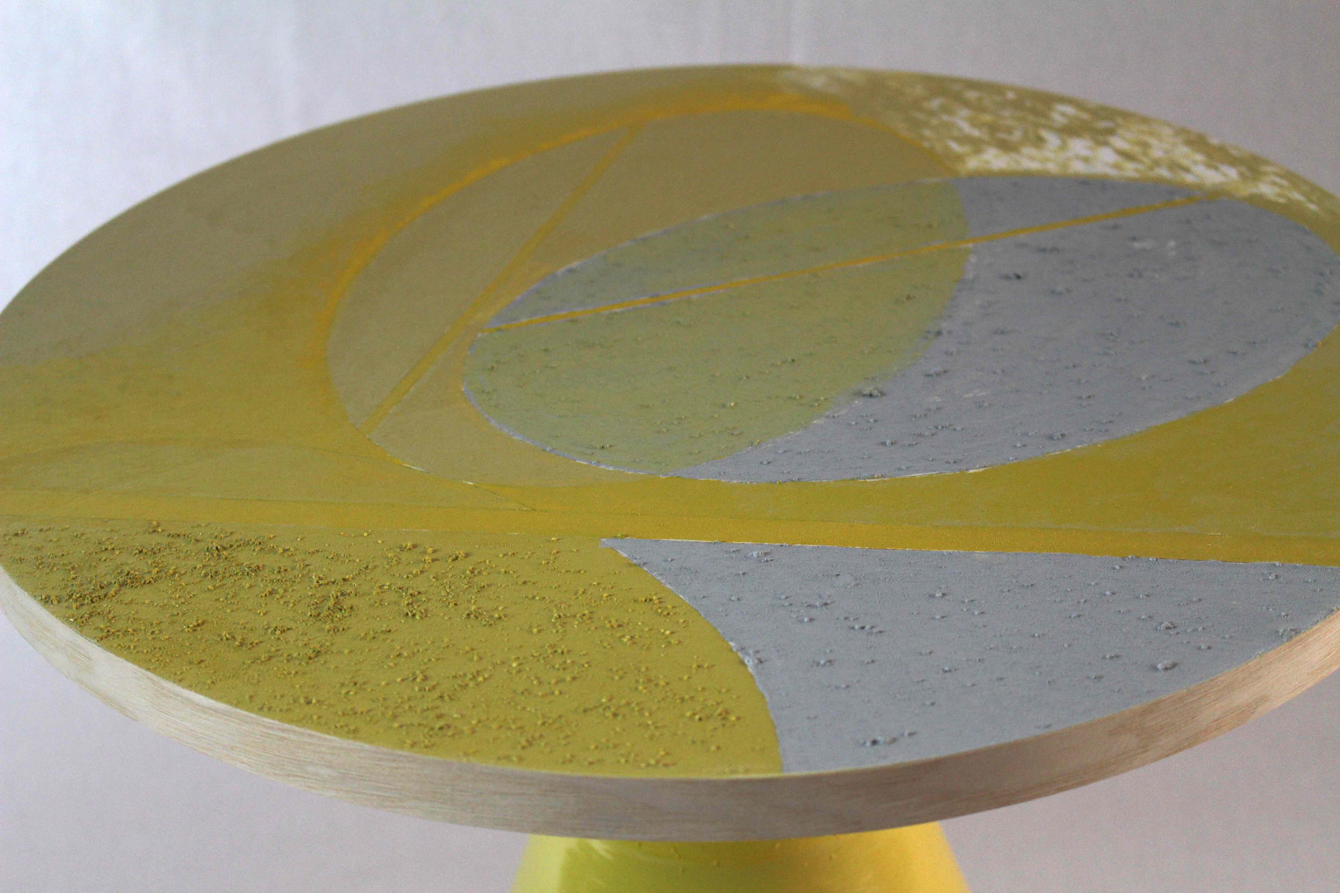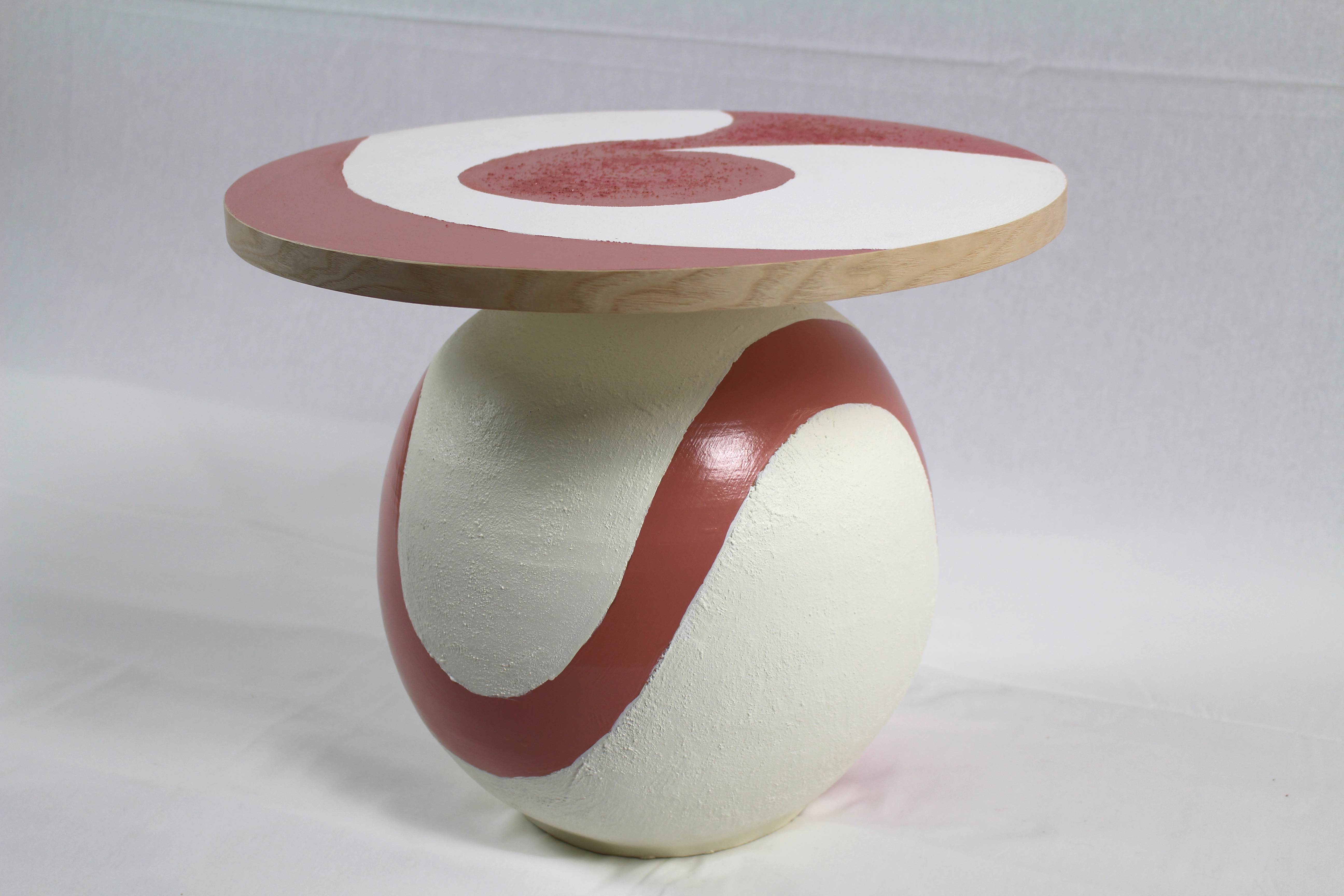 Ceramic coffee table and wooden top decorated and painted by hand. Single piece. Ash finish.