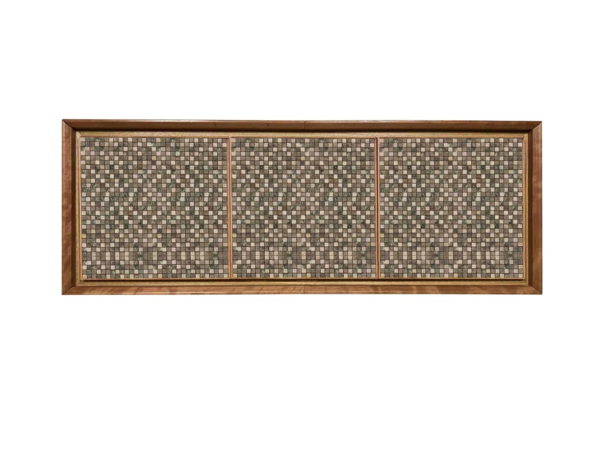 On the doors glass past enamel mosaic consisting of square tiles with a textured surface.