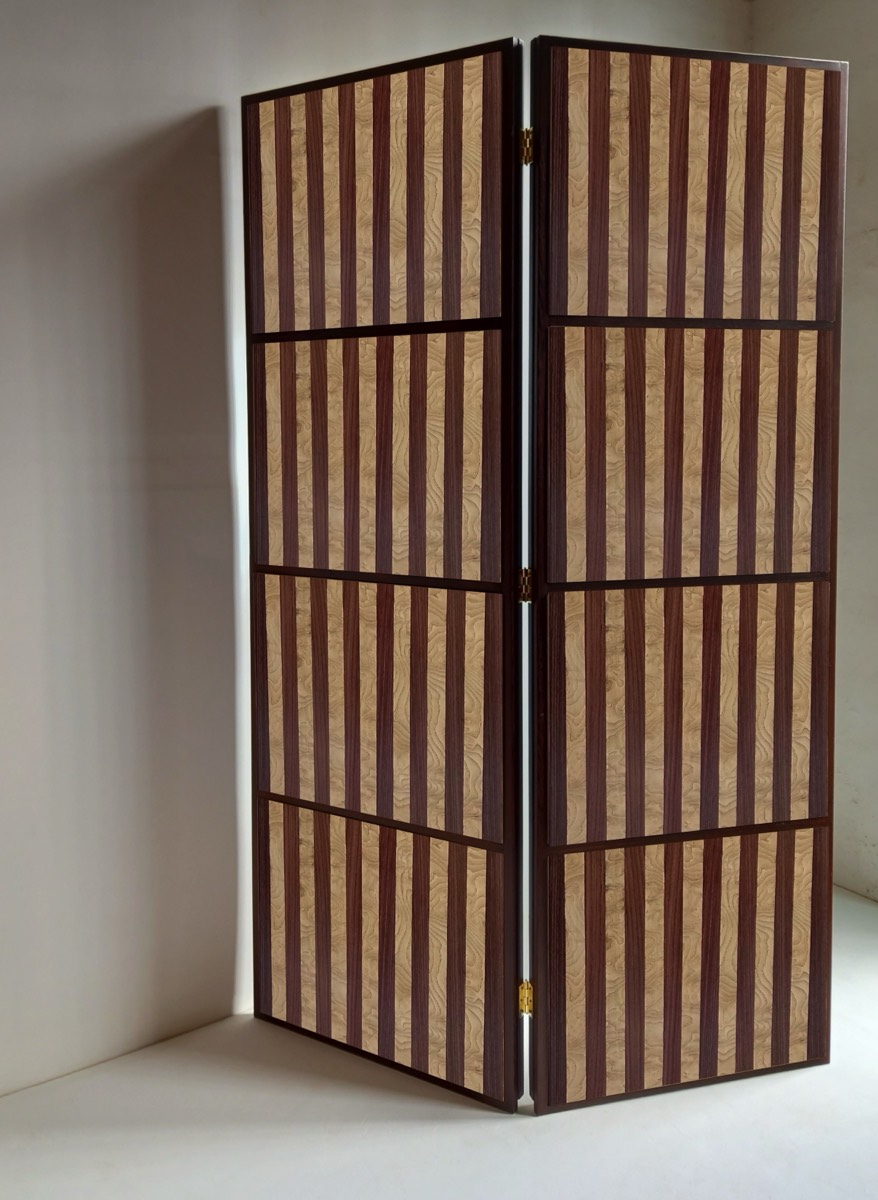 Room Divider with two elements, wengè-stained oak and inlaid wood