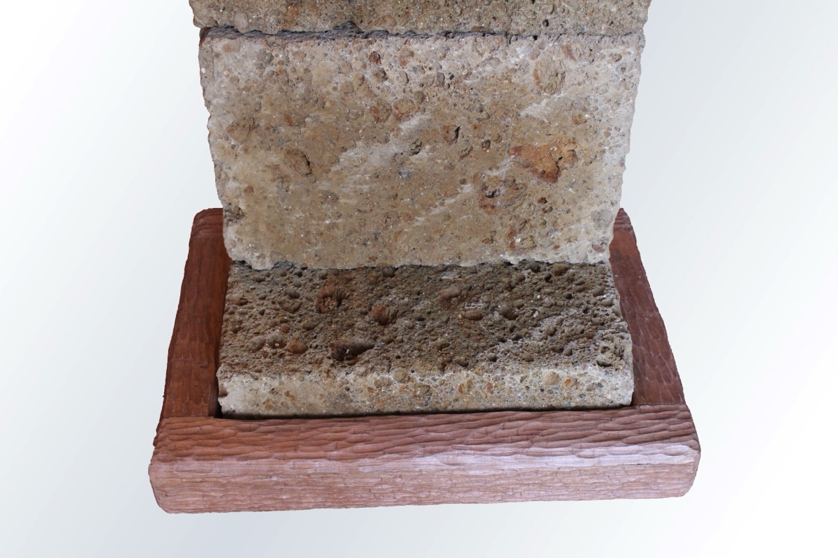 Artistic handmade umbrella stand. Base in carved cherrywood. Tuff blocks.