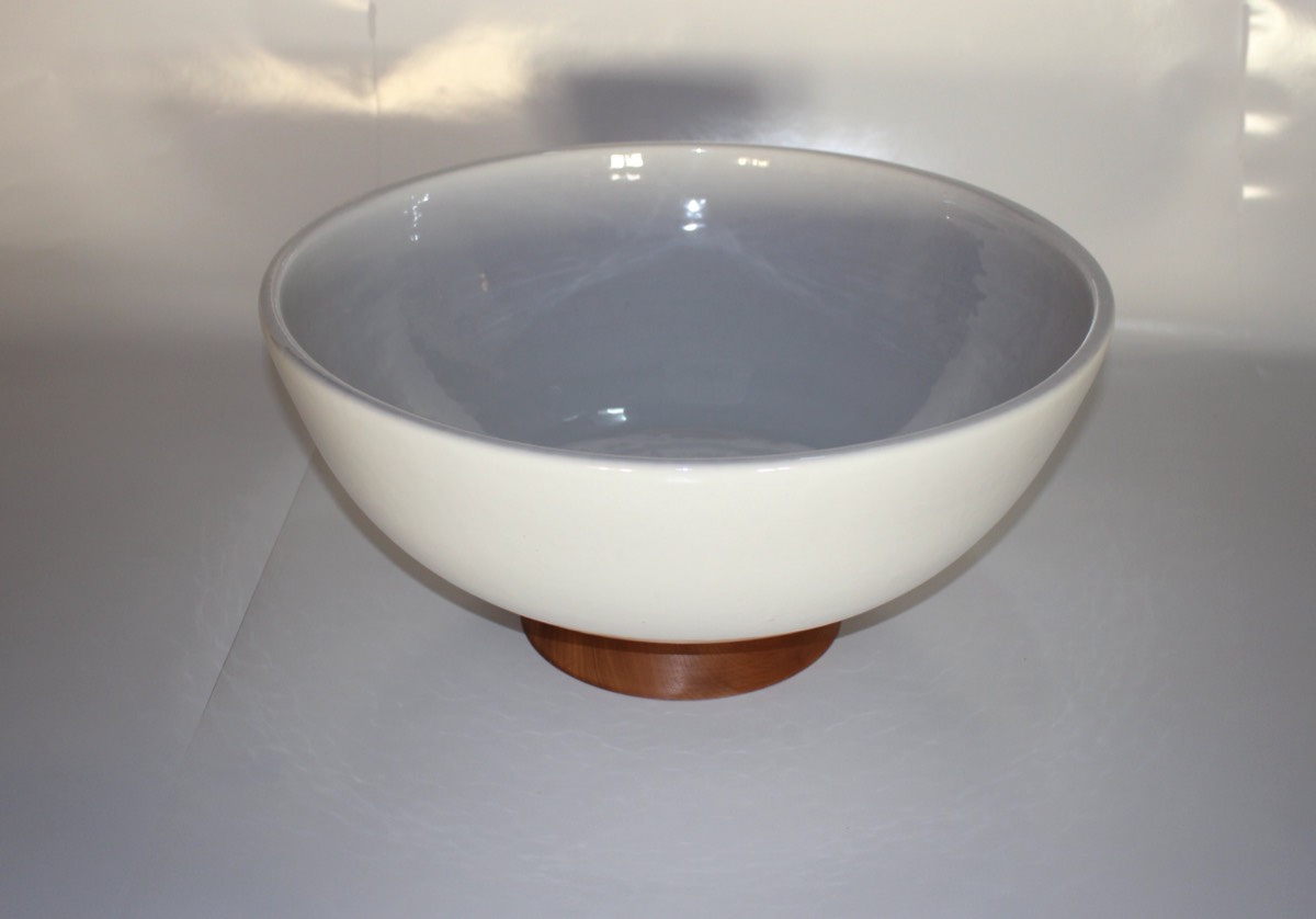 Fruit bowl in ceramic turned by hand and turned cherrywood.