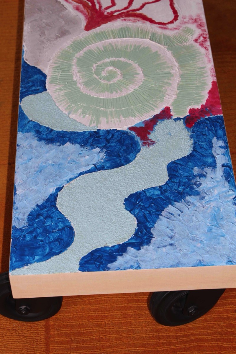 Artistic table made and decorated by hand. Wood and non toxic water-based paint. Decorated by hand.