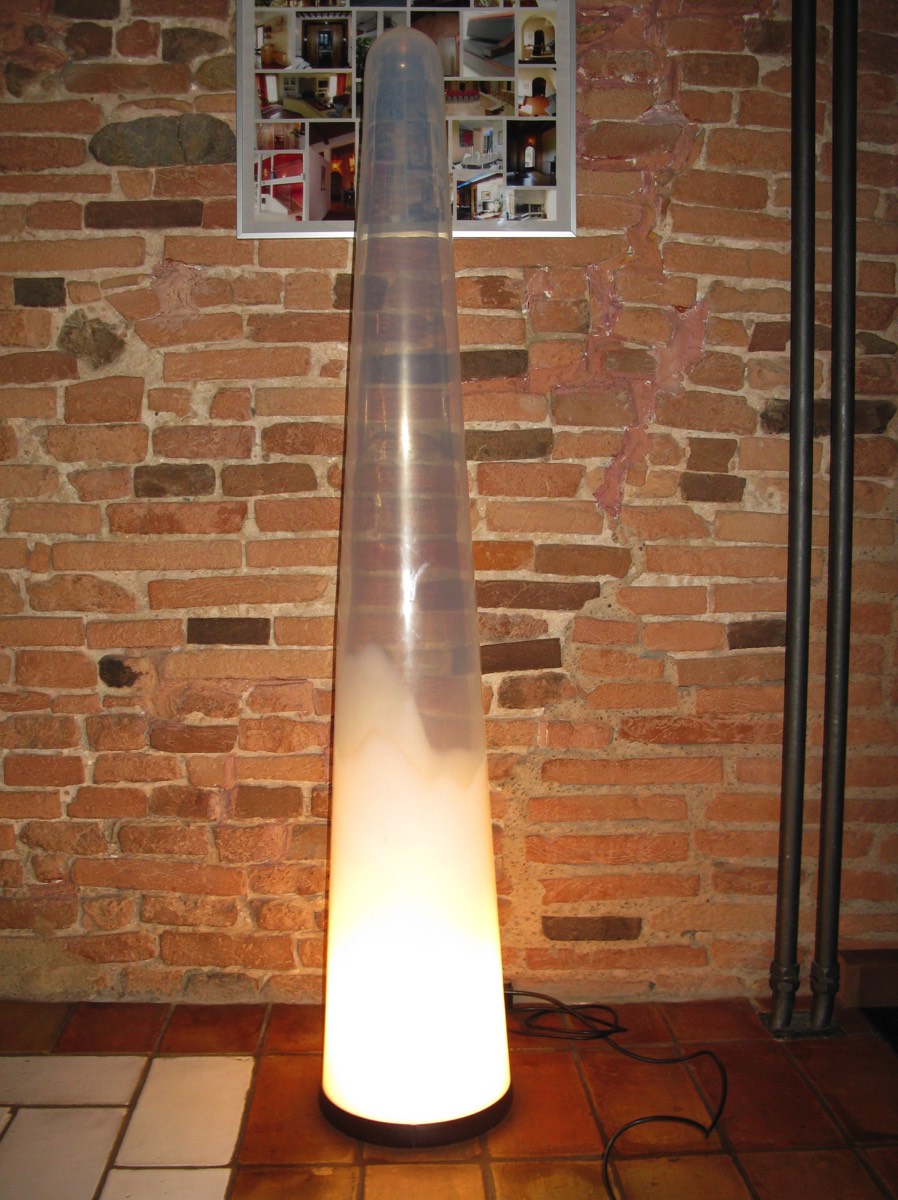 Description, coloured methacrylate fluorescent tube, painted aluminium, chrome-plated, bleu