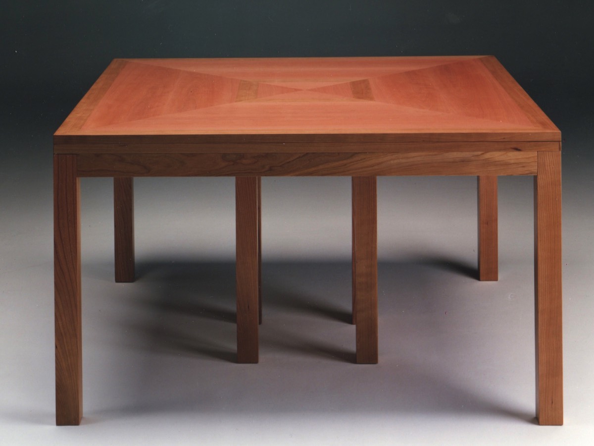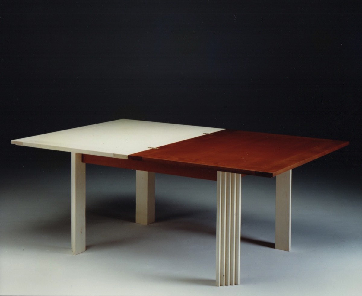 Description, pull-out table in maple and pear wood with briar, pear and maple -wood top