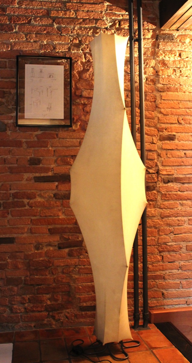 Description, solid acrylic resin and white enameled steel base. Model n.281