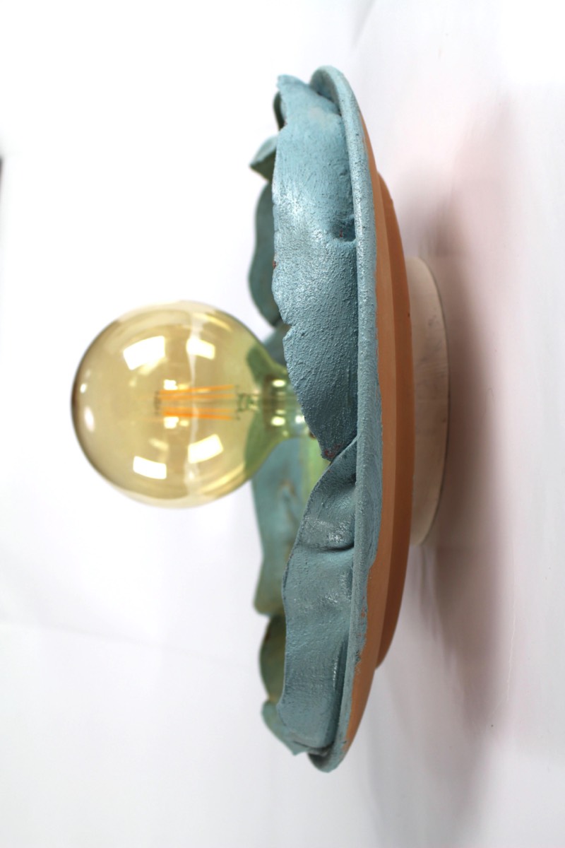 Handmade and decorated terracotta wall lamp.