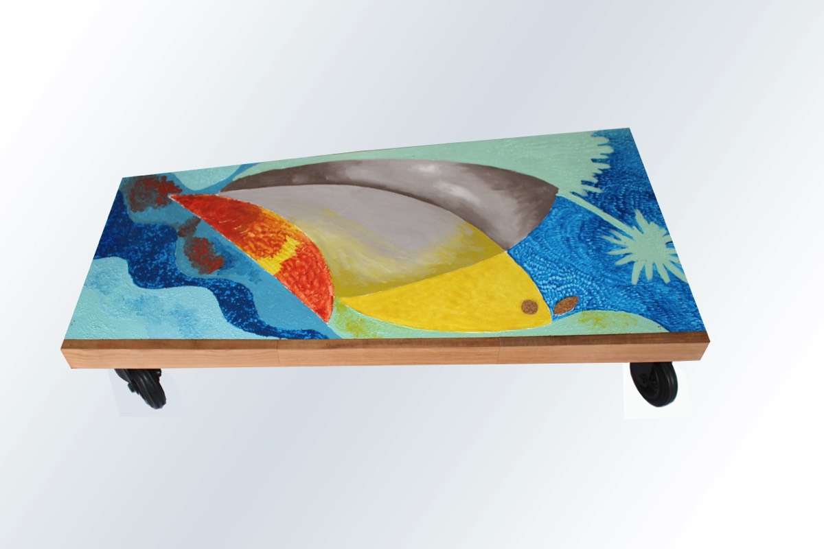 Artistic table made and decorated by hand.